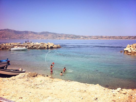 Riparto verso la punta della Calabria, stavolta insieme all’ amica L. I suoi posti del cuore e di infanzia me li ha raccontati sparsi quest’anno. Mi manca di scoprirne le radici a Villa San Giovanni. La Salerno Reggio Calabria è andata liscia che è una meraviglia. Dallo scorso anno, quando con una macchina carica di romane ci imbarcammo sulla nave Caronte verso Catania, sono cambiate dieci milioni di cose, tra cui l’ultimo tratto di autostrada. Lo ripercorro con l’anno che fu in testa, per poi scoprire di essermi fermata nello stesso autogrill dell’agosto 2013, rimasto fermo agli anni ’70. In un attimo mi trovo in un vortice di ospitalità dall’accento che sa di siciliano. Quella barca con quella specie di gru è la spadara, ce ne sono pochissime, queste sono le correnti dello Stretto di Messina, quelli sono i piloni, il siciliano di Torre Faro e il traliccio calabrese di Santa Trada; qui ci siamo sposati, quella è Ganzirri, qui ci abita la maestra Anna; là è dove vanno le coppiette la sera, qua c’è la granita più buona della Calabria, là un tempo c’era un’arena e io ero come il ragazzino di Nuovo Cinema Paradiso, da quel giardino vengono i pomodori, le melanzane, le pannocchie, quello è l’unico bar di Cannitello che fa lo spumone.