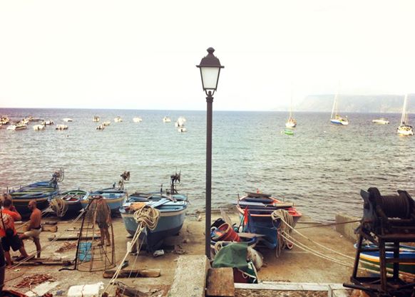 E dimmi, com’era questo Palinuro? Non era molto sveglio perché s’è addormentato mentre doveva vigilare, è caduto ed è morto. Mentre ci parla del nocchiere d’Enea che ha dato il nome al mare dove va da quando è bambino, l’amico-collega M. ci porta tra i gigli marini della spiaggia, in uno di quei rari Lidi – inizio a pensare che solo noi romani li chiamiamo stabilimenti- fatti solo di sabbia, quasi per nulla costruiti, con le incannucciate e il pavimento di legno, la musica che non è Hit parade 2014.