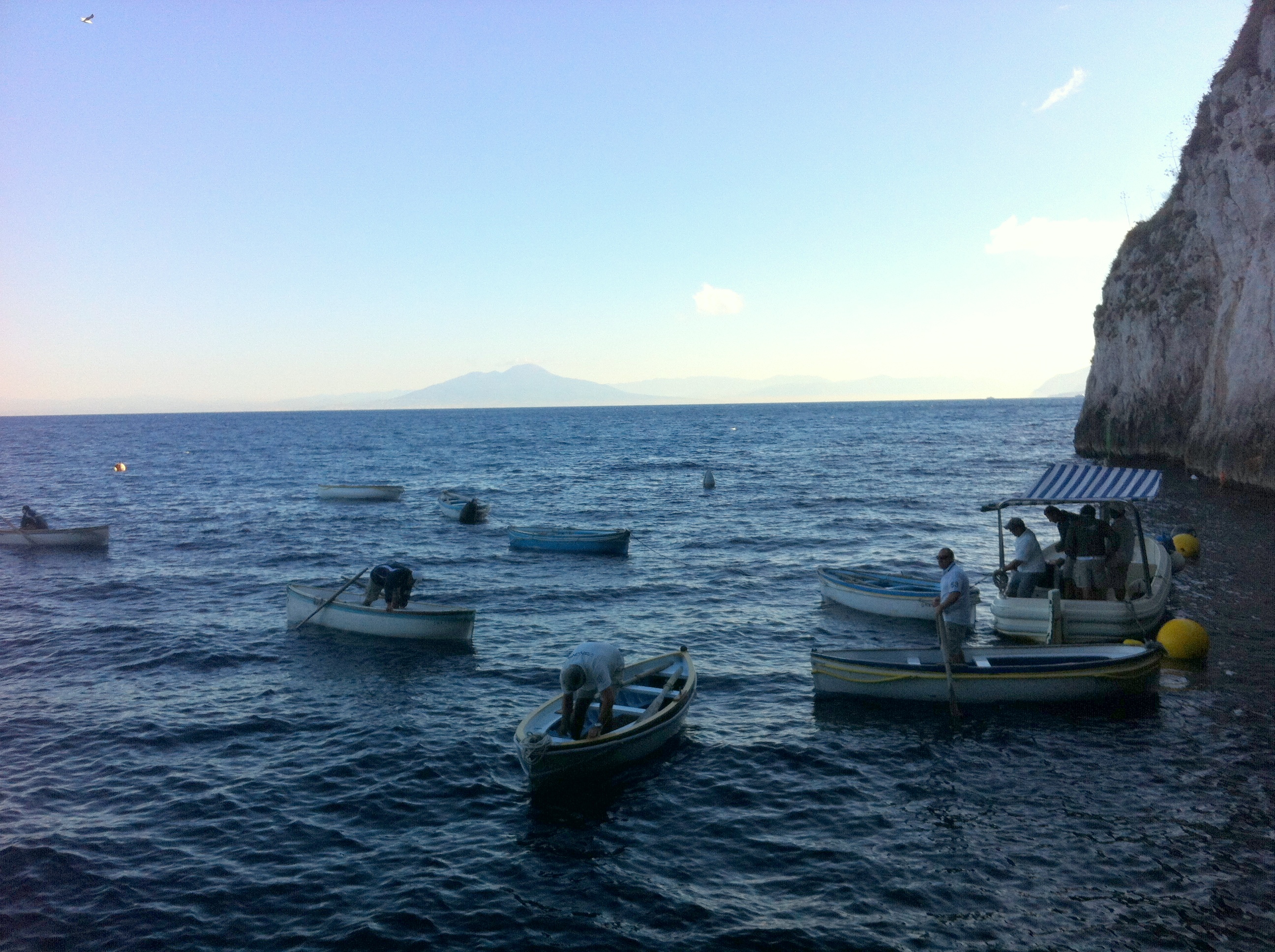 Il viaggio in Italia diventa tale solo una volta oltrepassata quella linea di mare che da nera diventa blu. Quando l’occhio all’inizio insoddisfatto poi si abitua al colore blu elettrico. Solo una volta oltrepassata la soglia sdraiati nel barchino, col terrore di prendersi la parete in faccia, coi marinai che si danno la spinta afferrando la catena sul lato destro della roccia, il turista giapponese metabolizza Capri e l’Italia. Solo così tutto torna al proprio posto.