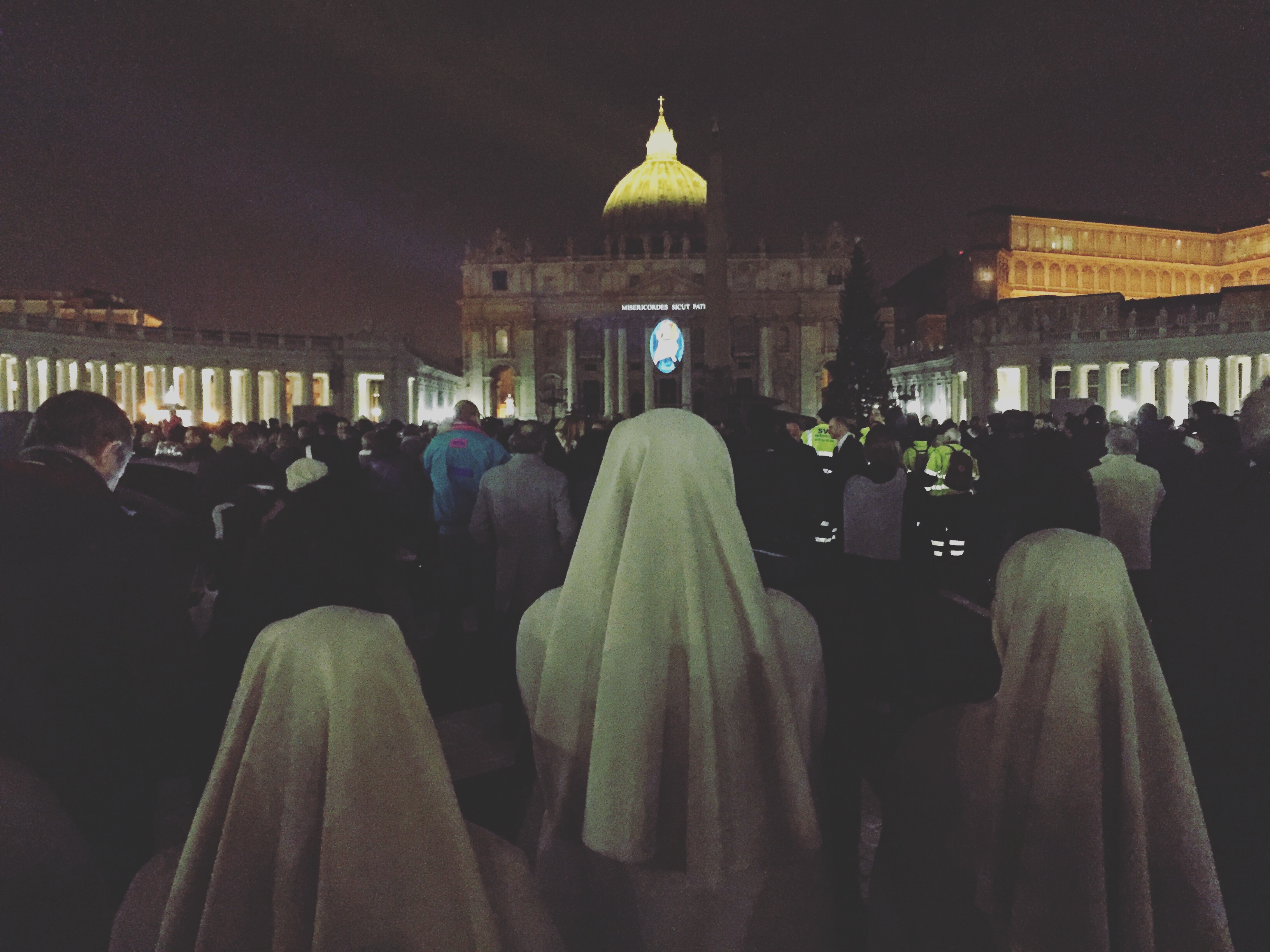 Alla fine l’8 dicembre è arrivato. Piazza San Pietro era semi vuota, pochi pellegrini, pochi curiosi. I controlli di sicurezza c’erano. No, col casco non puoi entrà.. Ma come no? Vabè dai, entra. Si è riempita tutta la sera, la piazza. Quando 70 proiettori hanno illuminato la facciata della basilica con immagini che rimandano all’enciclica di Papa Francesco, Laudato Si. Vedere farfalle e leoni seguire i contorni dell’edificio, in effetti, fa strano. Poi, tra le tante immagini proiettate, anche quelle di Steve McCurry o di Salgado. Chissà che l’appuntamento serale di ieri, in mezzo agli Ohhh per i leoni e le tartarughe marine, non risvegli qualche coscienza ambientalista. Chissà. Già prima dell’Angelus, alle 12, intraprendenti ragazzi invitavano turisti e pellegrini a scegliere la loro porchetta per pranzo. I vigili urbani gestivano il traffico come si gestisce a Roma, sopratutto a via della Conciliazione. A Castel Sant’Angelo, immancabile, il camioncino delle bibite e altro. Doveva essere rimosso tempo fa, come i centurioni. Sul Tevere, affacciandosi da Ponte Sant’Angelo, sfrecciavano moto d’acqua della Polizia. Su San Pietro, gabbiani e un elicottero. Il Giubileo della Misericordia è iniziato.